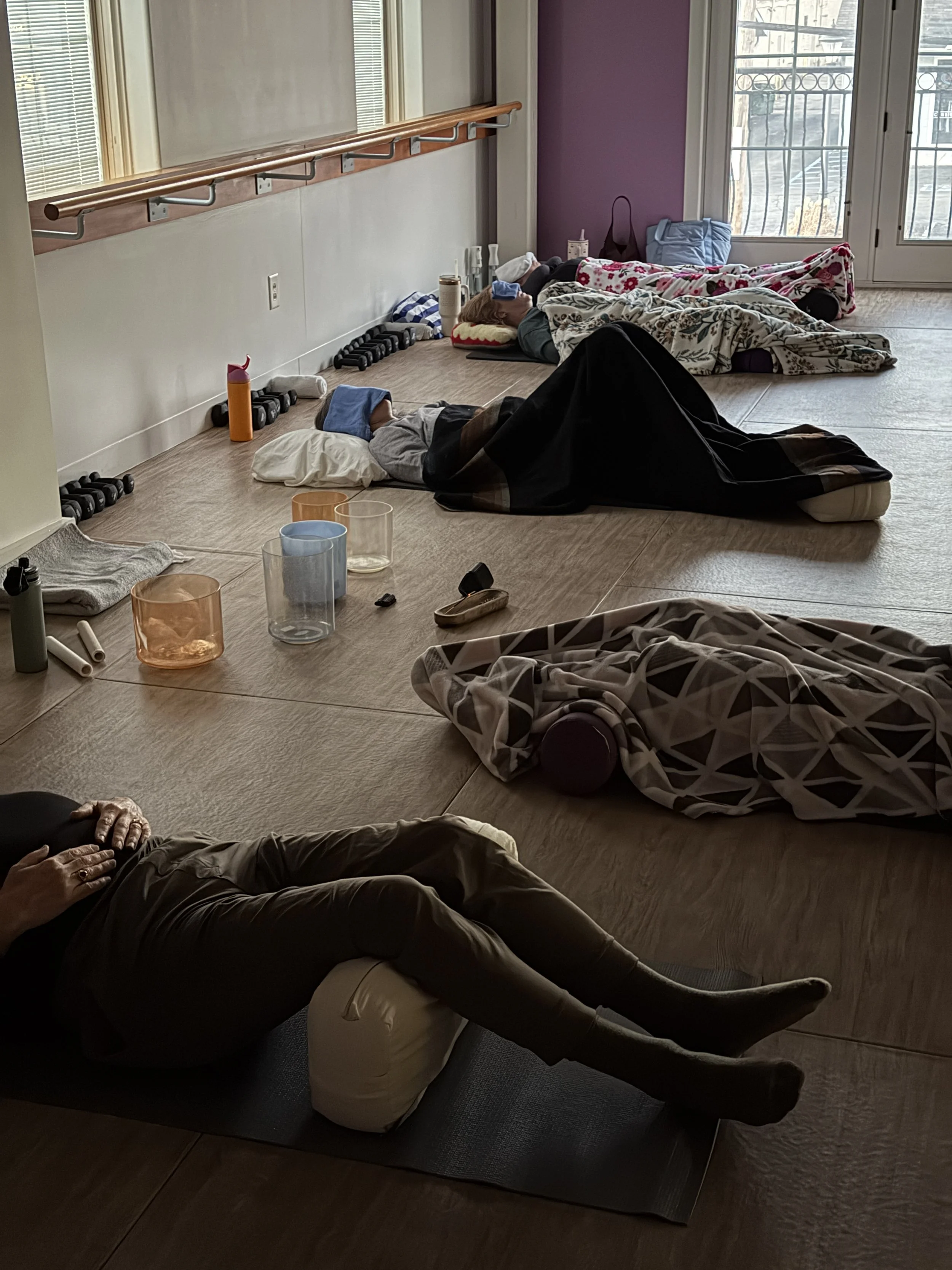 The Sunday Reset is a weekly community sound bath experience designed to support nervous system regulation, mental clarity, and deep rest.